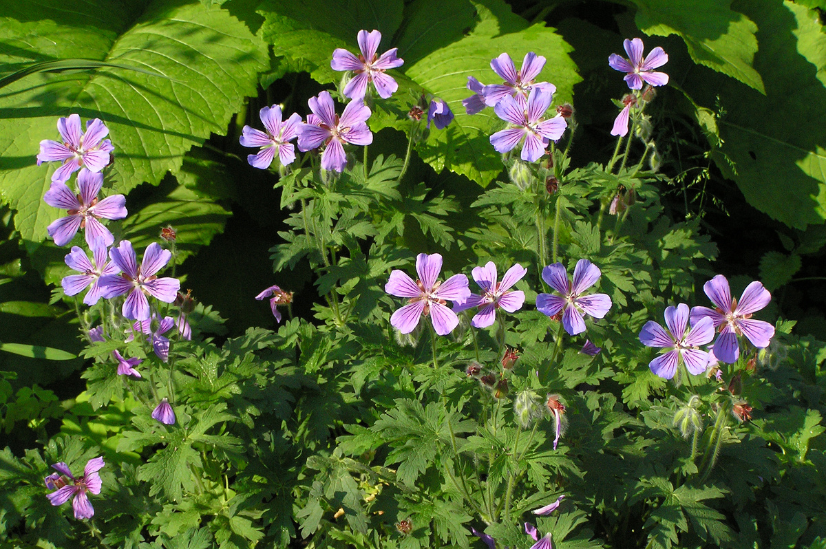 Герань хорошо знакома многим, она произрастает в лесах и горных районах Европы и Азии. Один из наиболее примечательных видов — лесная герань (Geranium sylvaticum), цветущая лиловыми цветами на лесных опушках. Летом живописную картину дополняет луговая герань (G. pratense), которая удивляет своим сиренево-голубым оттенком. Оба этих вида располагают свой неповторимый шарм и могут обогатить любой сад.