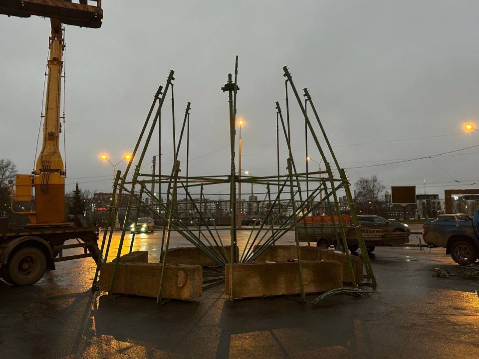 Приступили к монтажу главной новогодней ели Петрозаводска