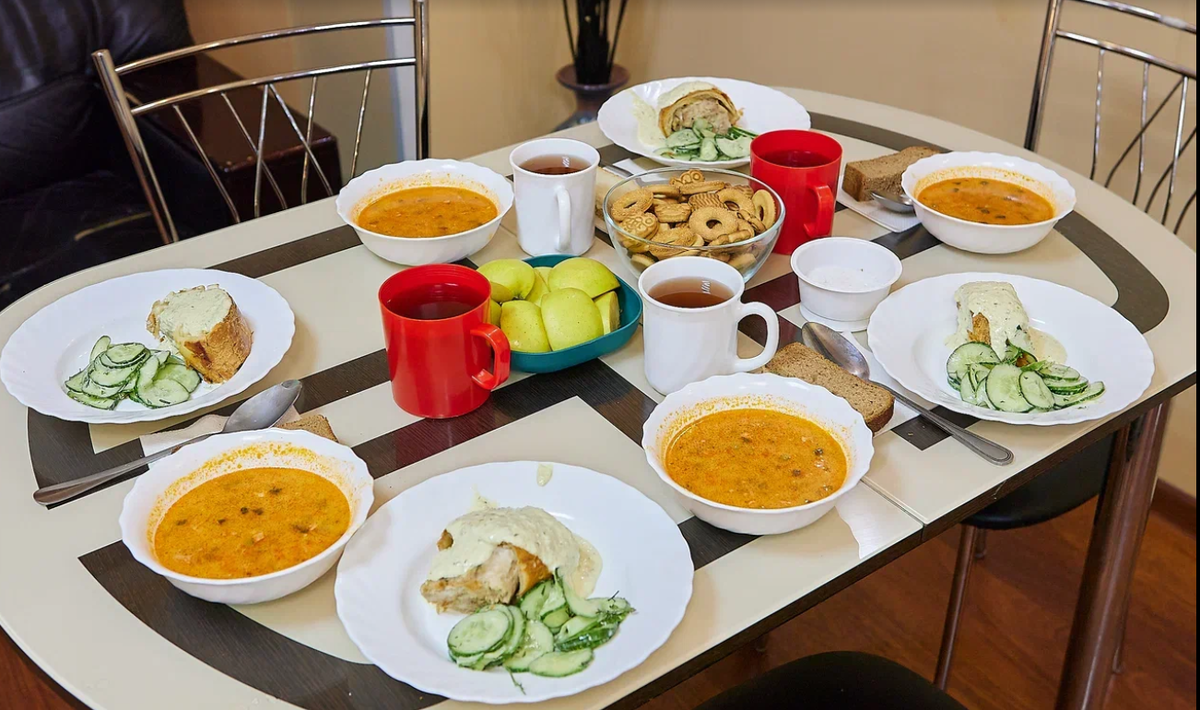 Блюда подаются в оптимальных порциях — это способствует легкости в желудке и предотвращает переедание, что особенно важно для пожилых людей. Кроме того, меню регулярно обновляется, чтобы не утомлять жителей однообразием.