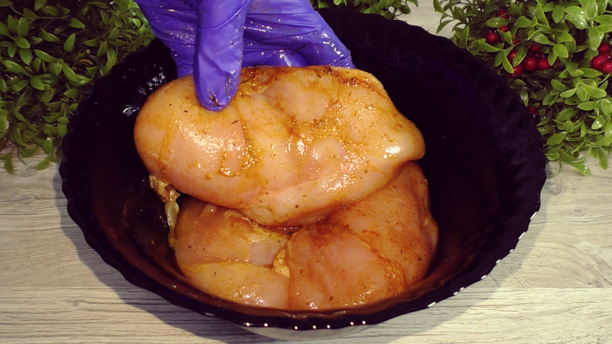 Перед началом готовки важно правильно замариновать куриное филе. В глубокой миске мясо натирается смесью паприки, выбранных специй и растительного масла. Для лучшего вкуса рекомендуется добавить немного соли. После этого миска накрывается пленкой, и мясо оставляется мариноваться минимум на 30 минут.