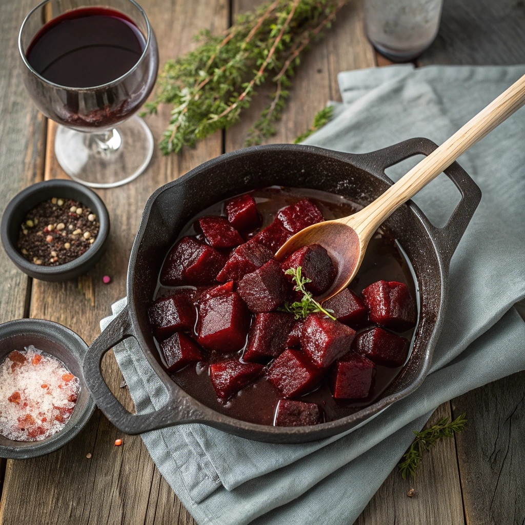 Свёкла может стать звездой на любой трапезе, если правильно подобрать к ней гарнир и соусы. К примеру, тушёная свёкла с вином и обжаренными луком и чесноком создаёт неповторимый букет вкусов. Для более освежающего варианта можно использовать белое вино с апельсиновым соком, что добавляет нотку цитрусового аромата и делает блюдо по-настоящему ярким.