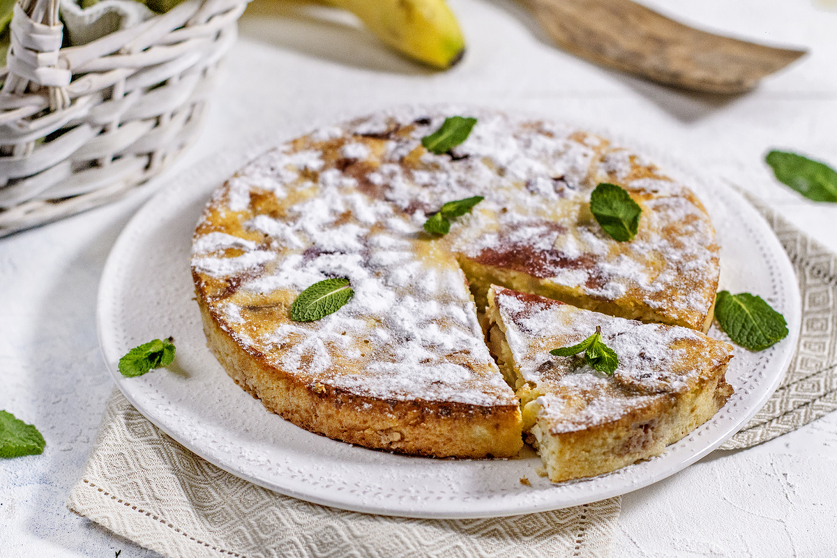 1. Предварительно разогрейте духовой шкаф до 190 градусов. В глубокой миске объедините яйца, сахар и сливки, взбивая их до получения однородной массы. Затем добавьте творог и манку, еще раз хорошо перемешайте. Очистите банан и нарежьте его полукольцами, добавив к полученной смеси.