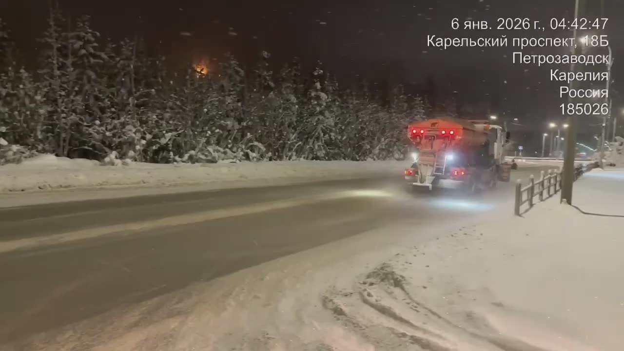 Дороги и тротуары в Петрозаводске убирают круглосуточно.