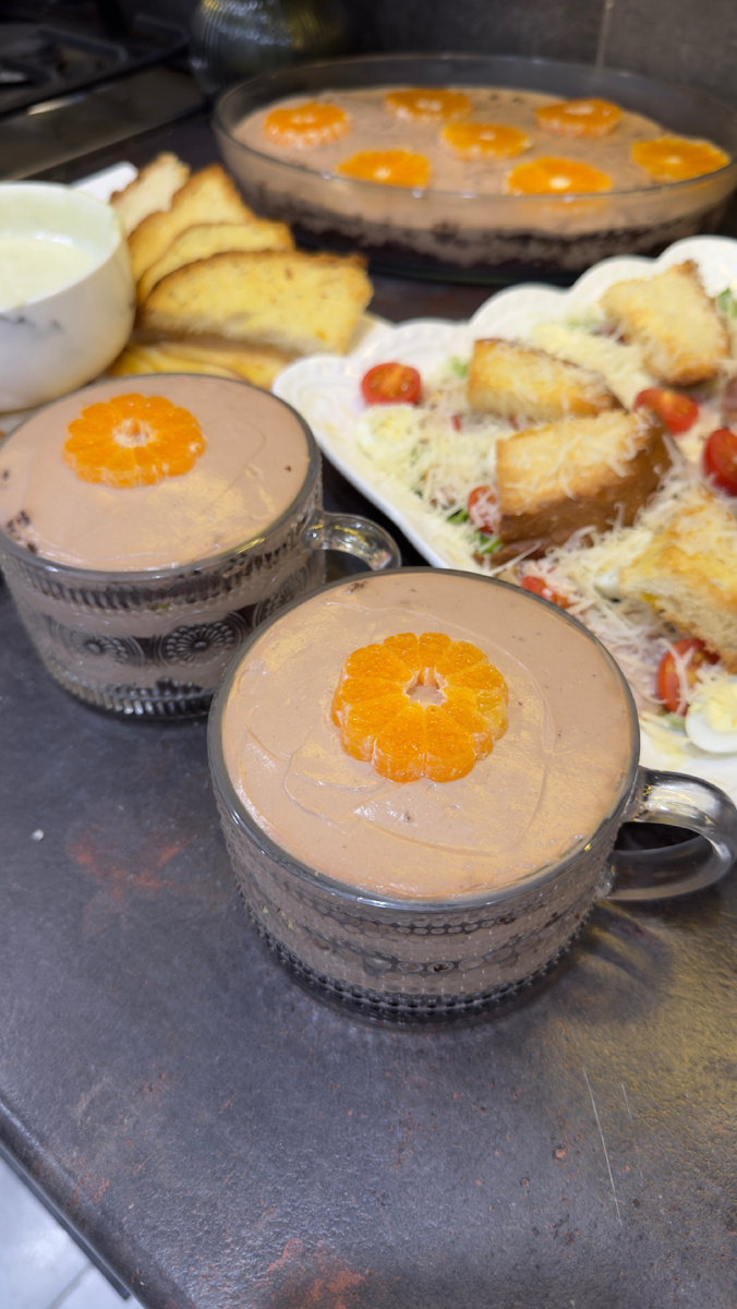 Приготовить крем, взбивая все ингредиенты до однородности. Собрать десерт, чередуя слои бисквита, крема и кусочков апельсина. Украсить по желанию — например, мандариновой цедрой.
