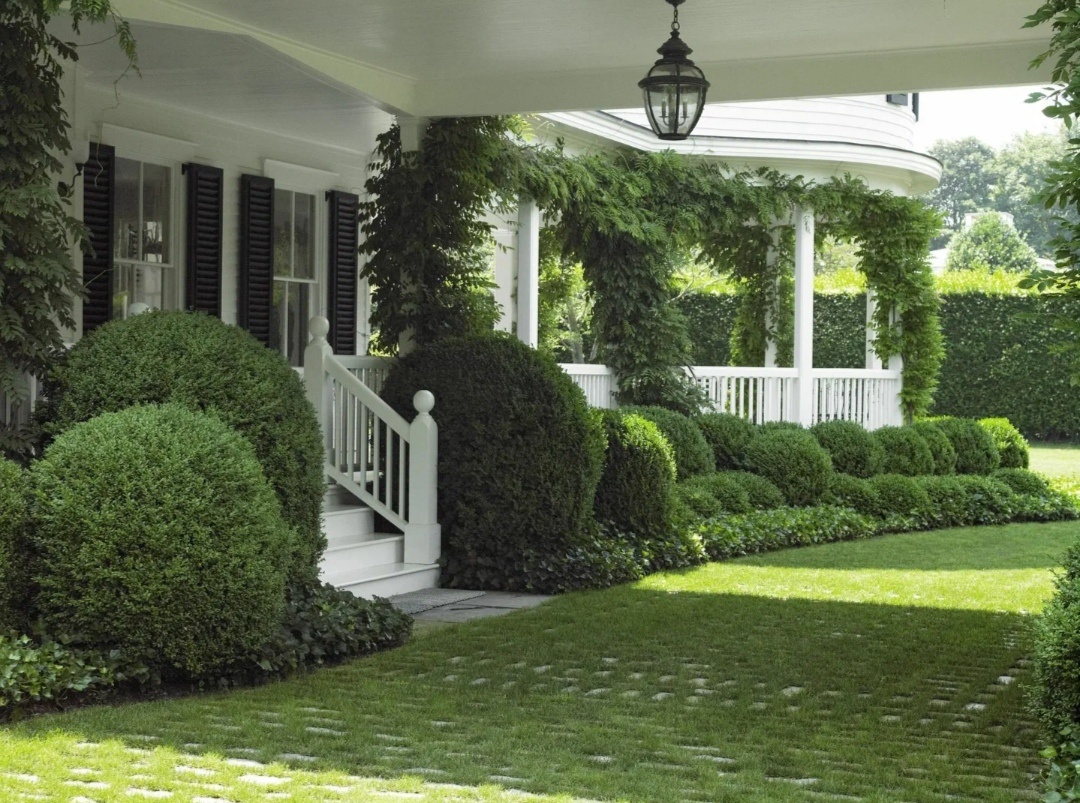 Для классового стиля можно использовать подстриженные кустарники, идеально общие линии и дорожки, возрождающие парадный вид. Простые, но изысканные формы делают пространство привлекательным и гармоничным, а растения добавляют живости.