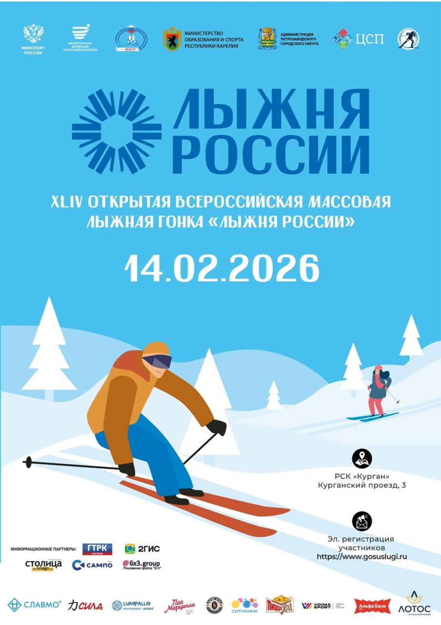 В Петрозаводске всероссийская массовая лыжная гонка пройдет 14 февраля на РСК «Курган». Заявки принимаются до 12 февраля, регистрация открыта на Госуслугах.