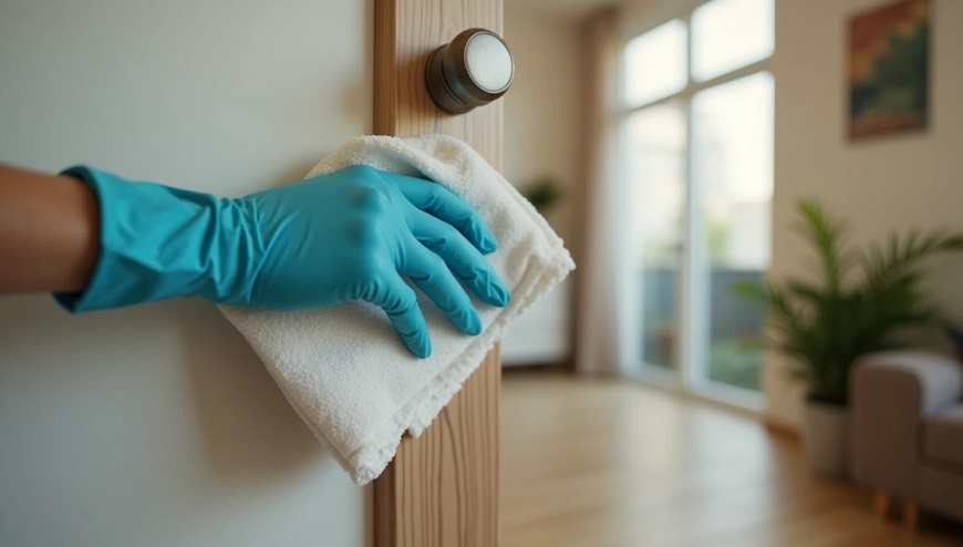 - Регулярно очищать ручки дверей и выключатели антисептическими салфетками.