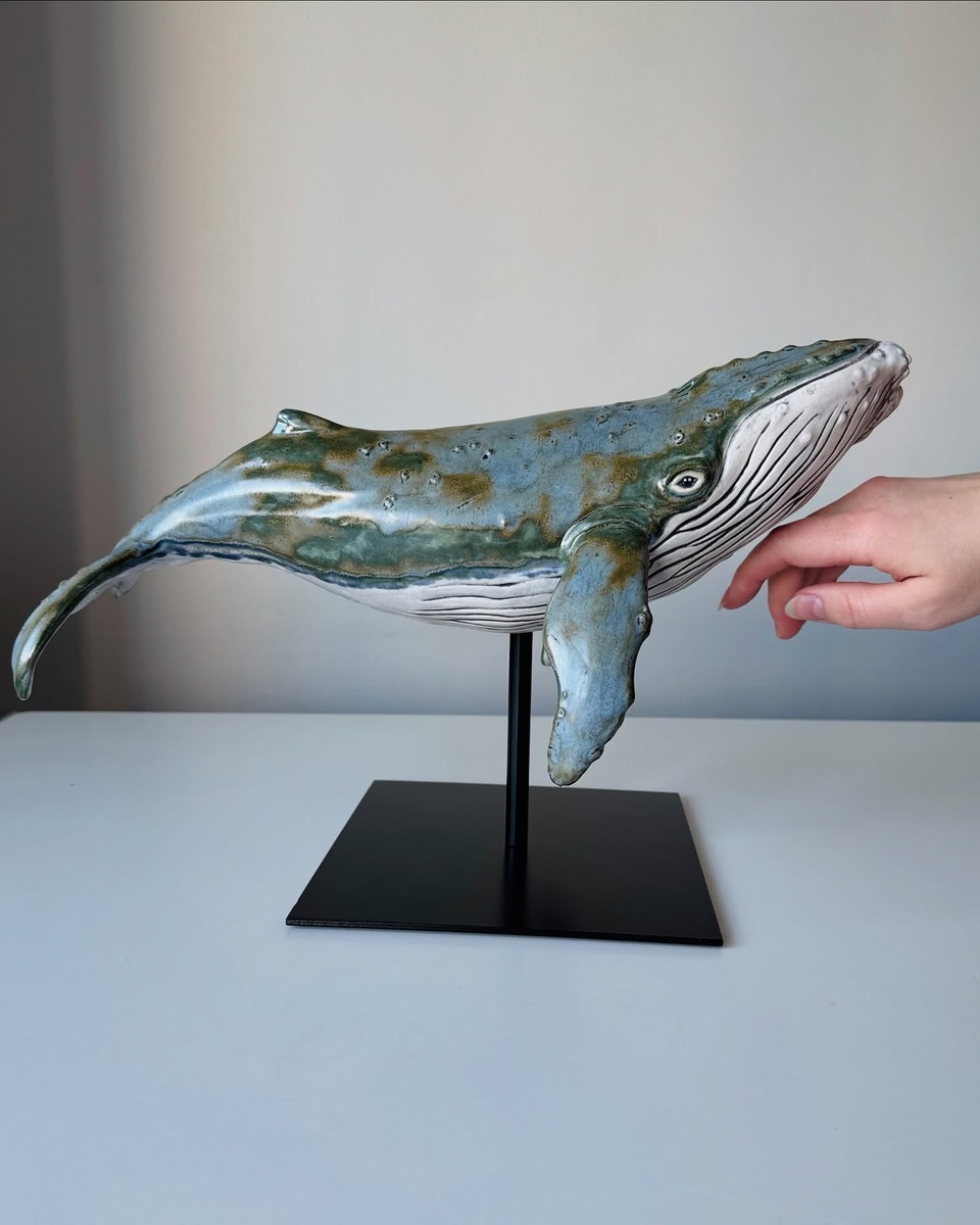 Одной из главных тем, к которой обращается Александра, являются киты – величественные обитатели морских глубин, символизирующие свободу и гармонию с природой. Каждое её творение – это не просто элемент декора, а история, рассказанная через уникальную текстуру и форму. Художница с безграничной любовью воссоздаёт детали, которые вовлекают зрителя в подводный мир.