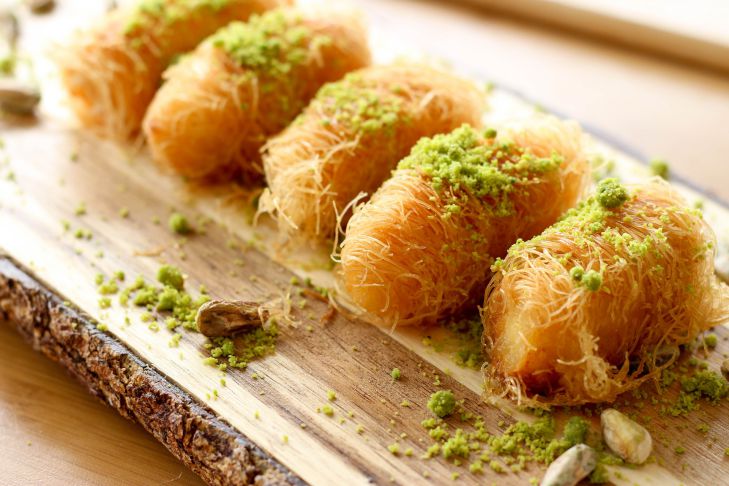 Чтобы ее приготовить, потребуется взять 200 граммов сливочного масла, 350 граммов фундука, 550 граммов теста фило, 450 мл воды, 270 граммов сахара, 400 мл молока.