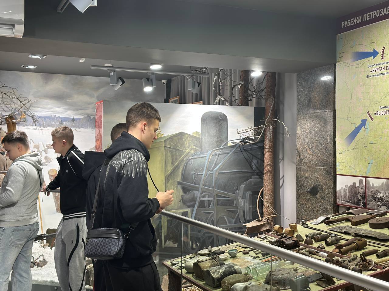 Также мы провели для них экскурсию в Центре Воинской славы Петрозаводска. Студенты и кадеты познакомились с основными экспозициями, посвящёнными Великой Отечественной войне на территории Карелии: от подлинных фронтовых реликвий до современных интерактивных инсталляций.