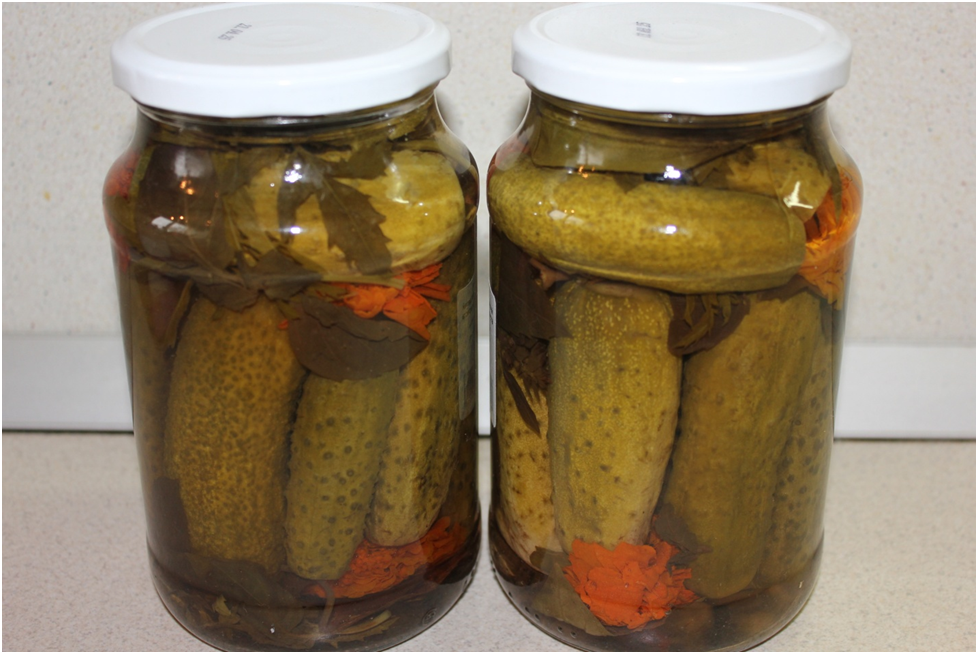 - Веточки бархатцев — 2 штуки на одну литровую банку;