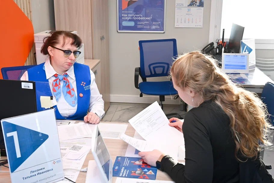В центре состоялась ярмарка вакансий, где с восемью кандидатами-женщинами руководство швейной фабрики Арктика общалось в режиме ВКС и предлагало работу вахтовым методом.