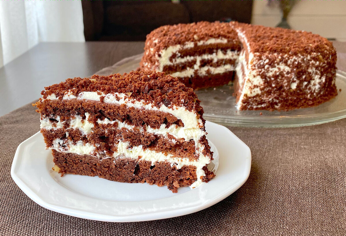 Этот торт изначально не планировался к выпечке, но внезапное желание сладкого у супруга заставило взяться за дело. В итоге, несмотря на сильное искушение, удалось откусить лишь небольшой кусочек.