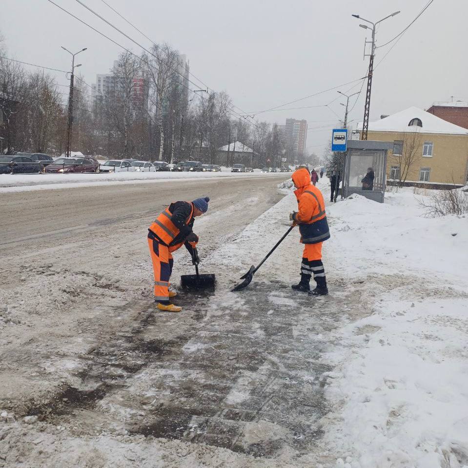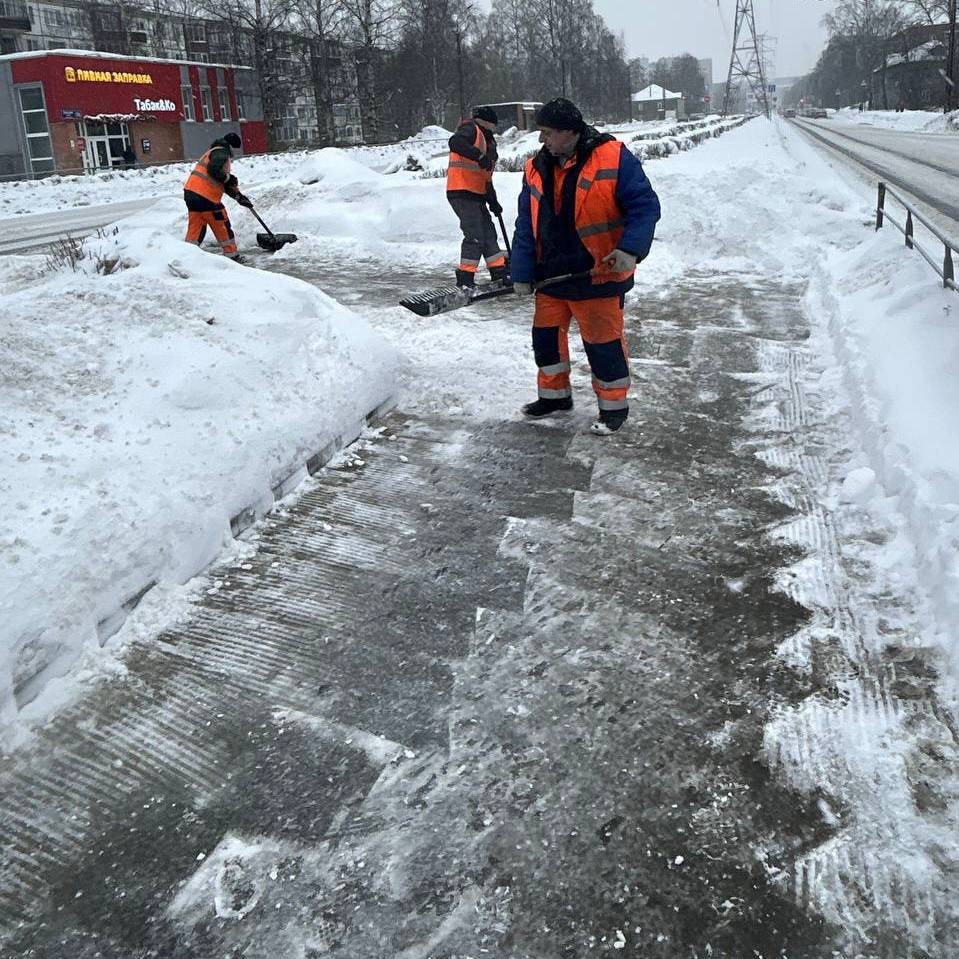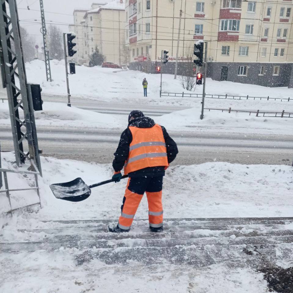 Бригады Кондопожского ДРСУ убирают проезжую часть, а также уделяют внимание уборке тротуаров, переходов, остановок и лестничных спусков.