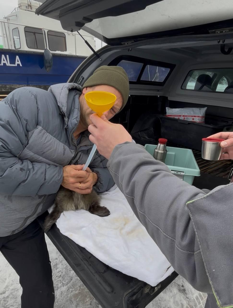 «Люди объехали на аэролодке пространство вокруг и попытались найти следы пребывания самки на льду или хотя бы лунку, трещину с водой. Но ничего не нашли, и так как малышку активно атаковали птицы, забрали ее на берег», — рассказали волонтеры.