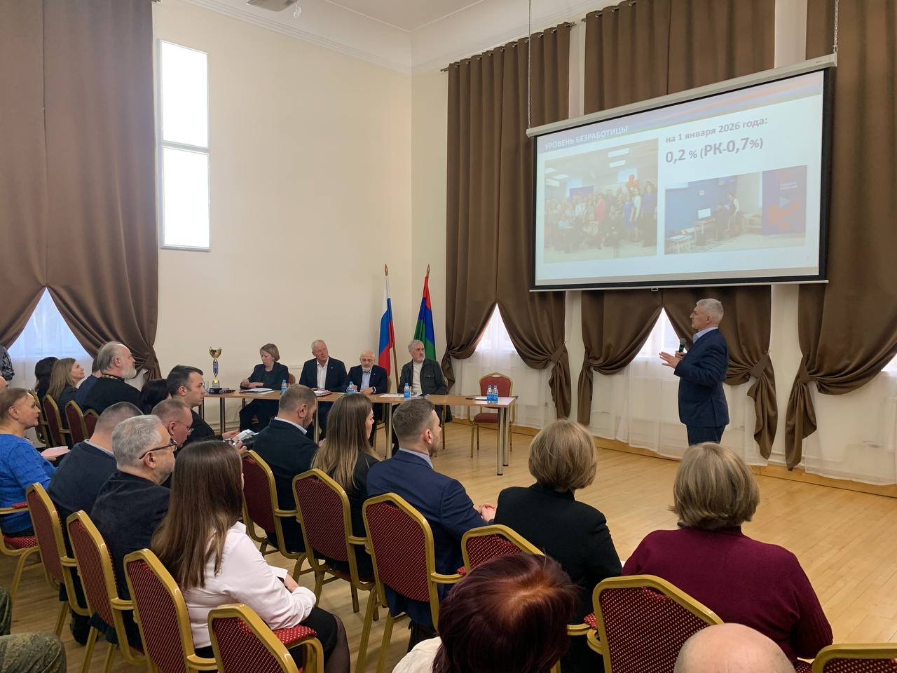 Председатель Законодательного Собрания Карелии Элиссан Шандалович, председатель Комитета по образованию, культуре, спорту и молодежной политике Татьяна Тишкова (фракция «Единой России») принимают участие во встрече Главы республики Артура Парфенчикова с жителями Сортавальского муниципального округа