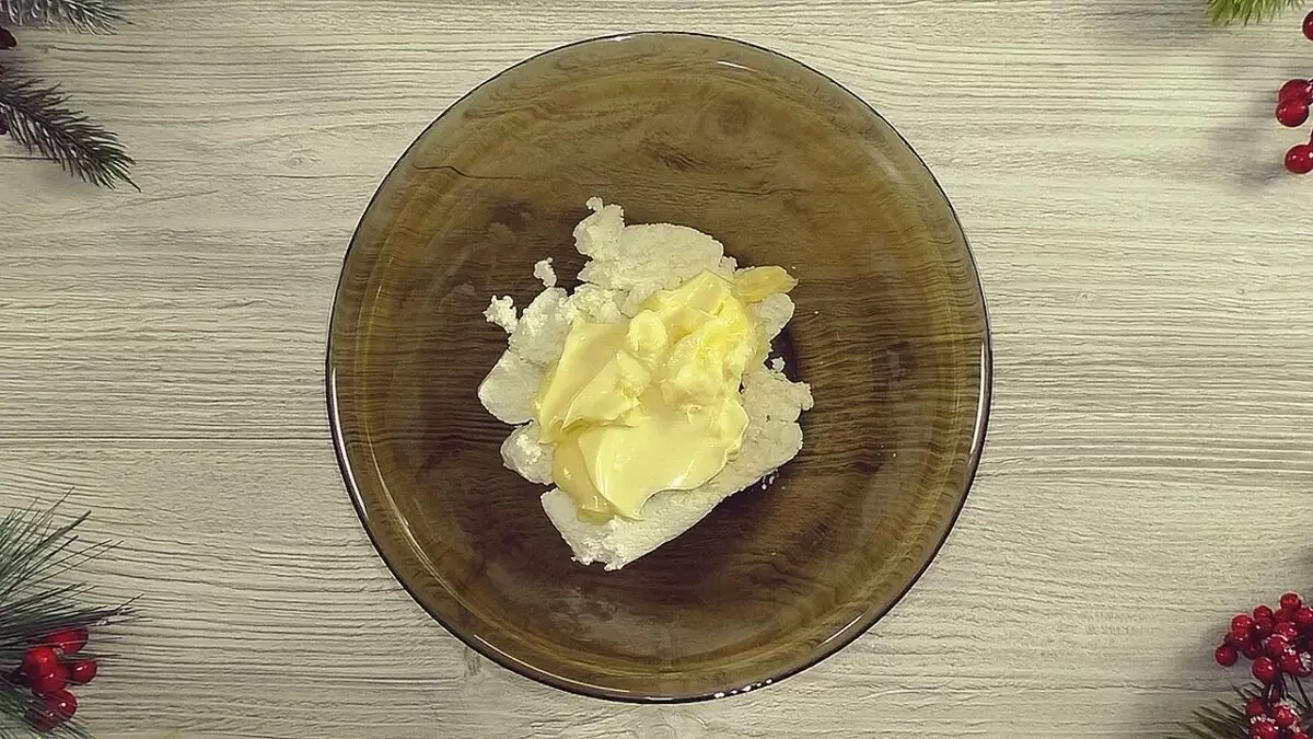Следующим шагом является добавление размягченного сливочного масла, после чего массу нужно тщательно перемешать.