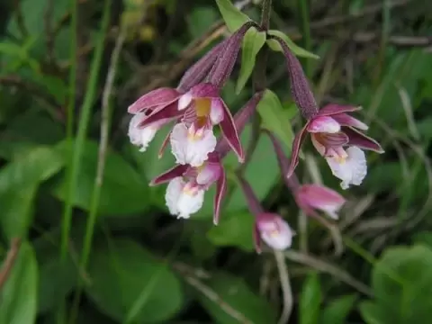 Цветки дремлика достигают 2,5 см в длину и образуют соцветия, в которых может быть от 6 до 20 цветков. Они поникают на тонких цветоножках, а наружные листочки окрашены в зеленоватые оттенки, с лёгкими фиолетовыми полосками. Внутренние лепестки белые с розовыми полосками, а губа, несущая нектар, разделена на две части. Эта очаровательная орхидея способна поразить воображение своего зрителя.