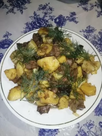 Перед началом приготовления стоит подготовить все ингредиенты, чтобы избежать лишних хлопот. Печень, лёгкое и сердце нарезают небольшими кусочками. Картошку очищают и также нарезают так, чтобы кусочки были примерно одинаковыми – это важно для равномерного приготовления. Лук можно порезать на полукольца или как угодно, в зависимости от предпочтений.