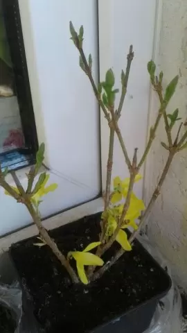 Саженец, доставленный год назад, был крошечным — всего 20 сантиметров в высоту — но уже с цветочными почками, которые успешно распустились на балконе в ожидании высадки. Через год после посадки куст форзиции заметно увеличился в размерах, но в основном вырастал неравномерно: самая длинная ветвь достигла 60 сантиметров, в то время как более короткие побеги нестабильно тянулись на 30 сантиметров.