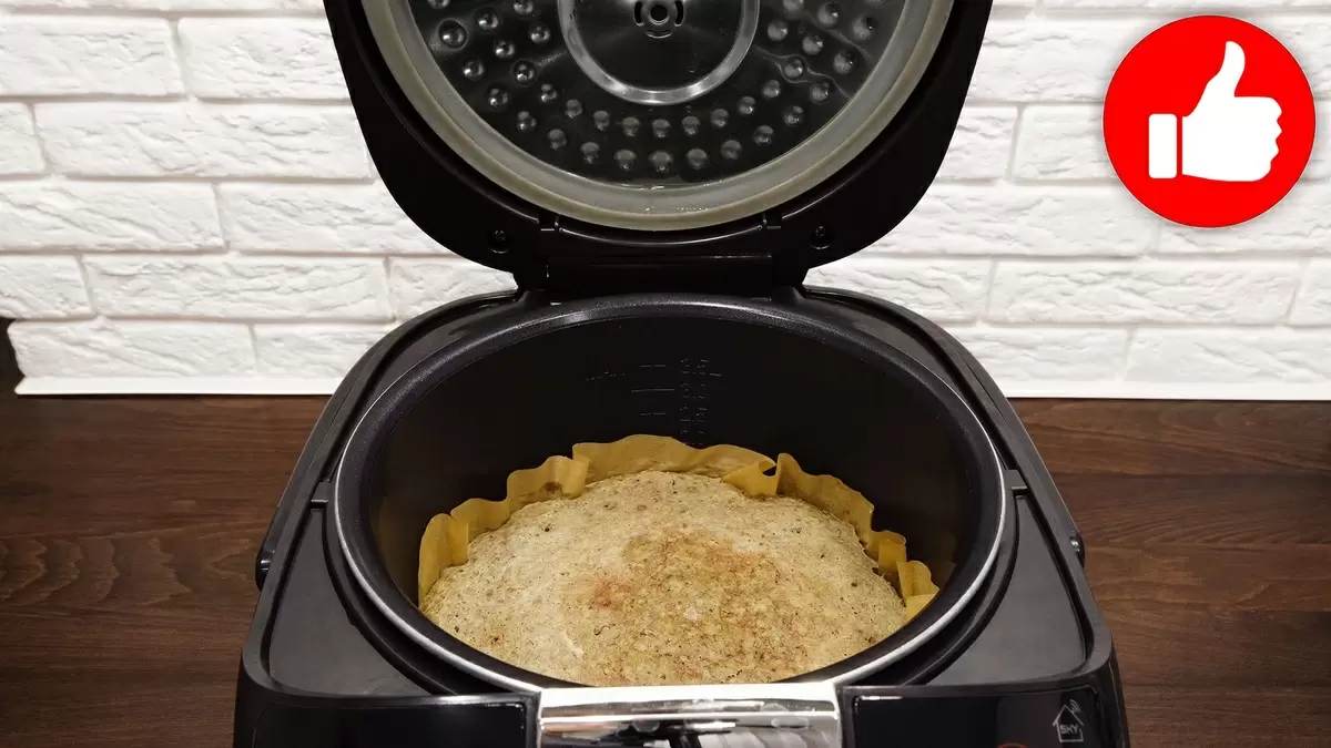 На дно чаши мультиварки лучше постелить бумагу для выпечки, чтобы запеканка не прилипла. Вылить получившуюся смесь в мультиварку и установить режим "Мультиповар 130С/Выпечка" на 40 минут. После завершения приготовления, дайте запеканке немного остыть — 5-7 минут при открытой крышке.