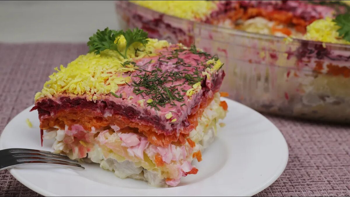Не забывайте: настоящая «шуба» формируется не сразу, а требует времени для пропитывания и смешения вкусов, поэтому дайте салату отдохнуть в холодильнике перед подачей.