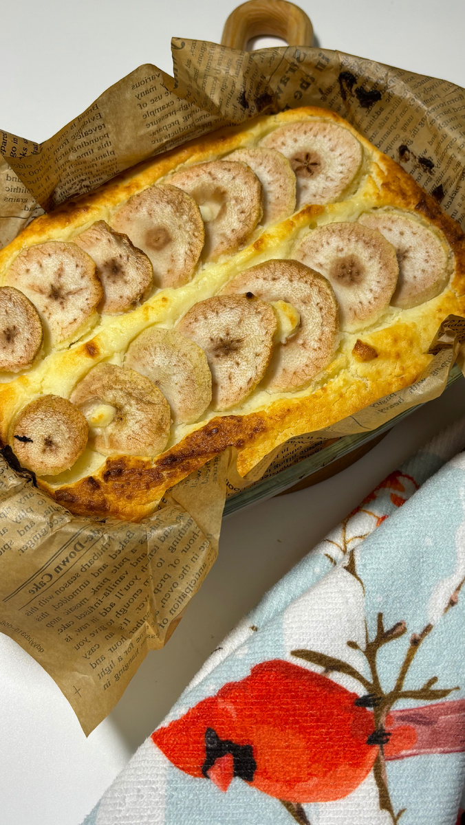 Через минут 30–40 в форме появляется золотистая поверхность, ароматные нотки карамели и фруктовой груши. Если форма большая, можно увеличить порцию — простой принцип: масштабуйте тесто пропорционально количеству груш.